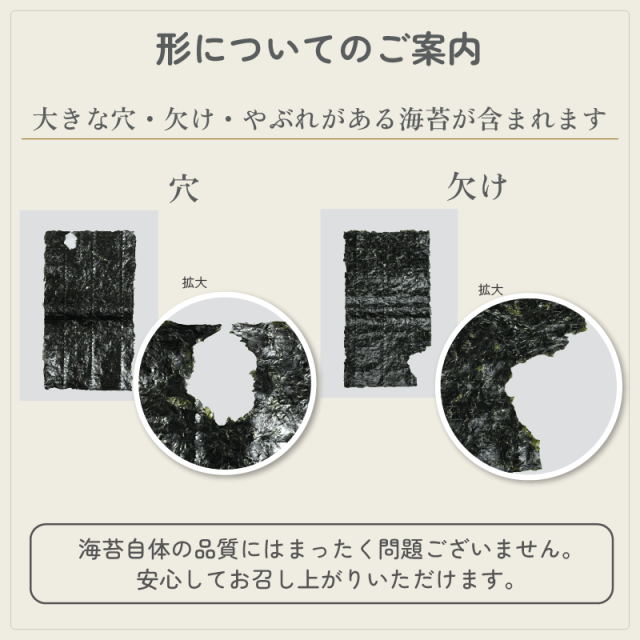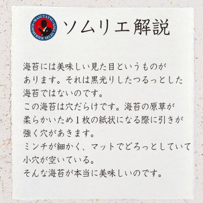 穴や欠けの多い原料をあえて選び、海苔本来の香りと旨みを追求しました。